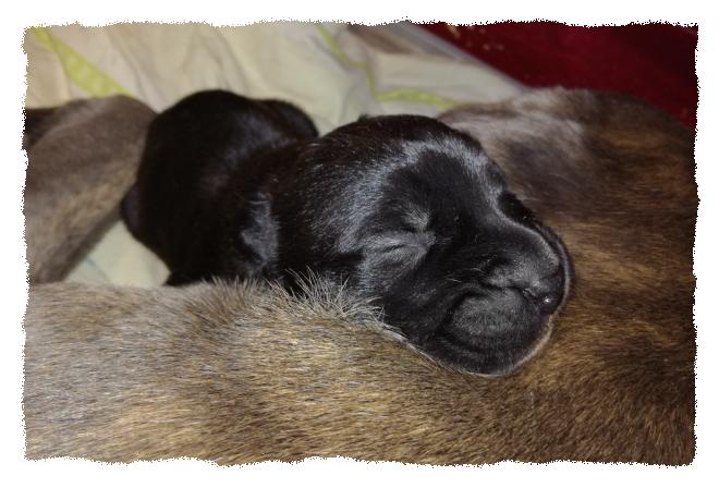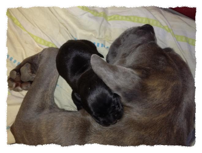 ersten Welpen. Bonny geht es gut und sie macht das alles ganz relaxed. :-)