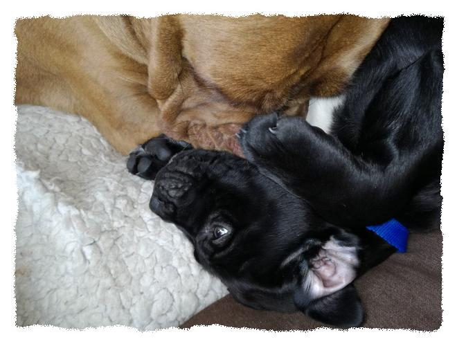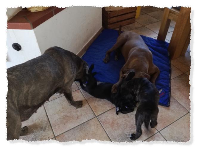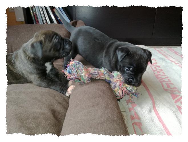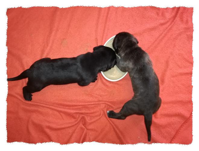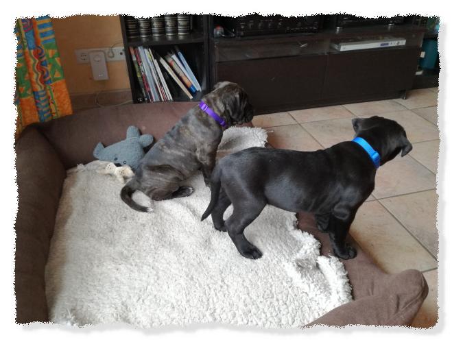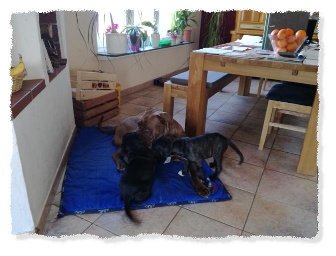 immer noch im Welpenzimmer, da es draußen arg kalt ist und die beiden die