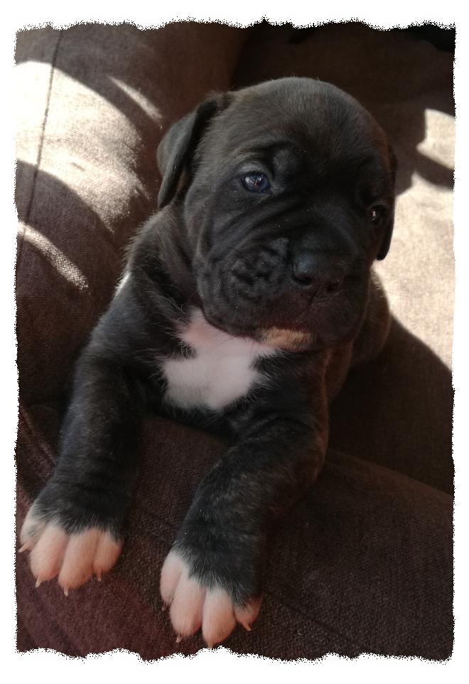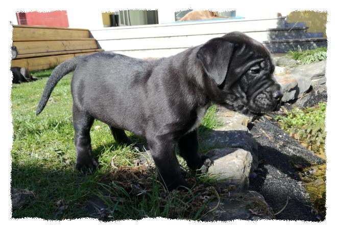 er ist sehr agil und reaktionsschnell. Sie hat zwei molossoide Blutlinien,