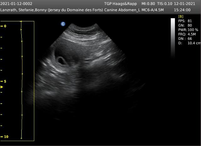 19.01.2021: Bonny ist Ende der 5. Trächtigkeitswoche. Sie hat