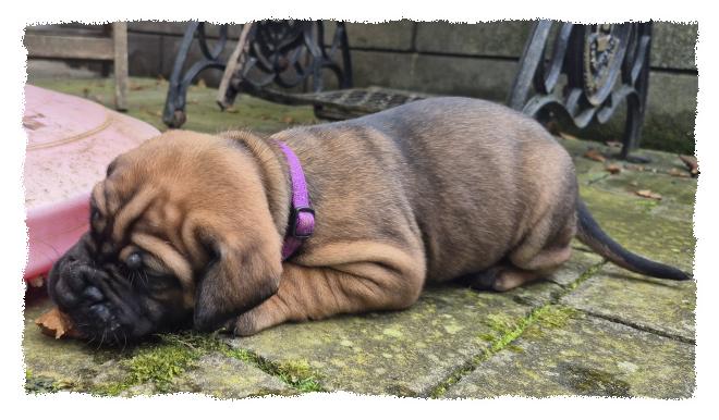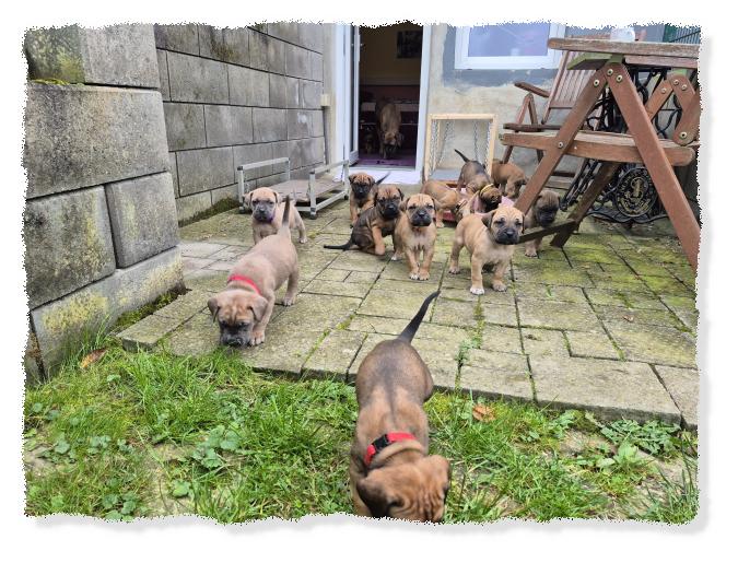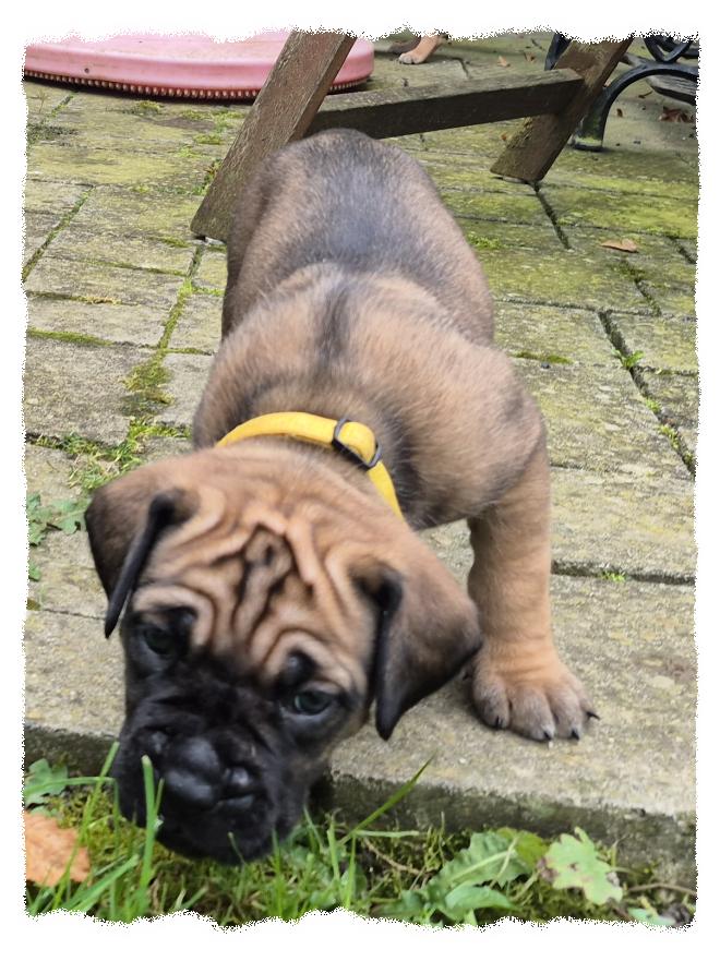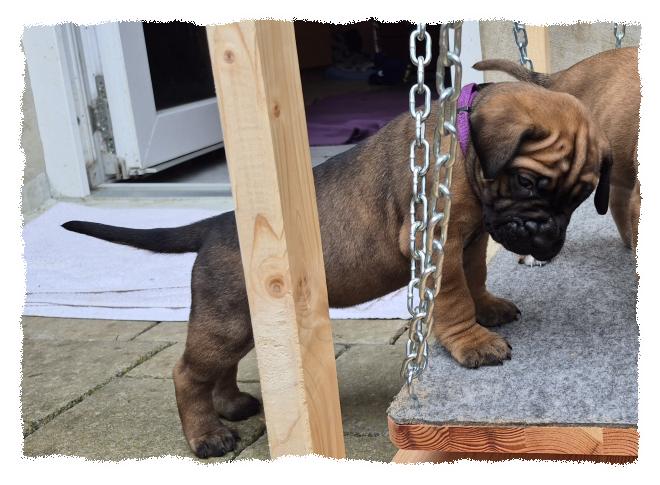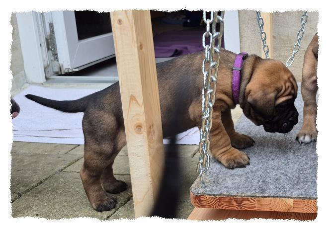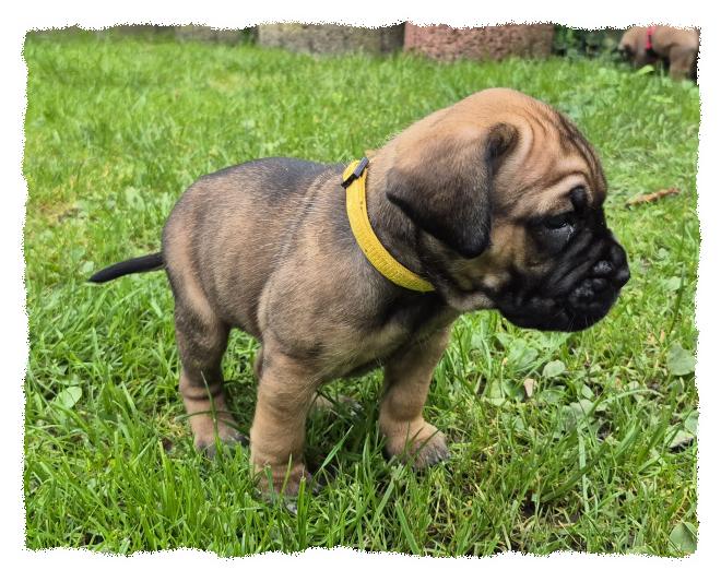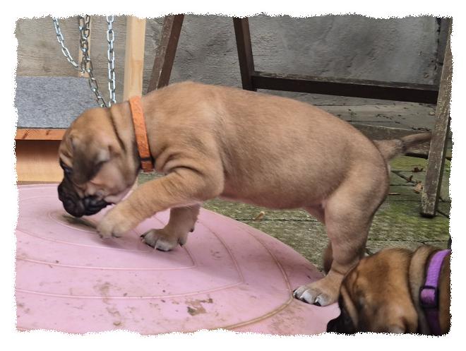 knochenstarke und sportlich/molossoide Hündin, die sehr menschenfreundlich und