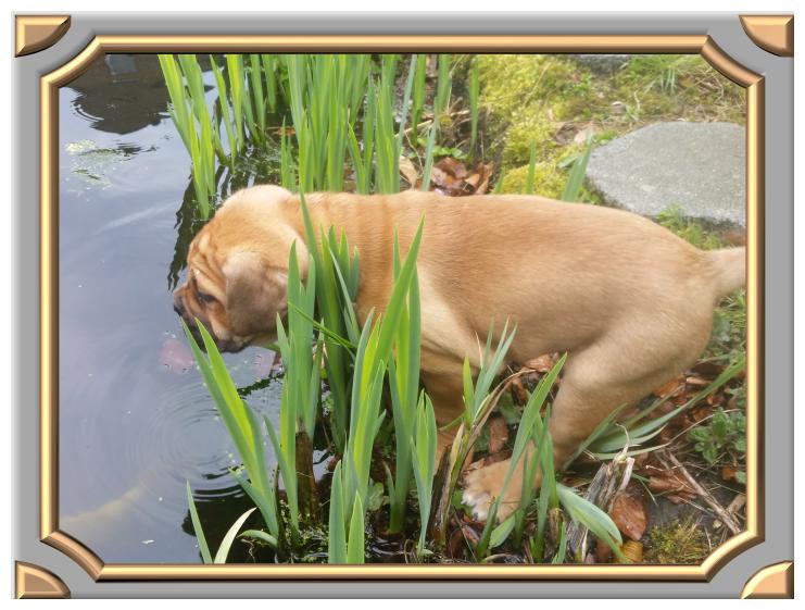 anderen Hunden im Rudel und sie dürfen auch unseren Garten, samt Teich,