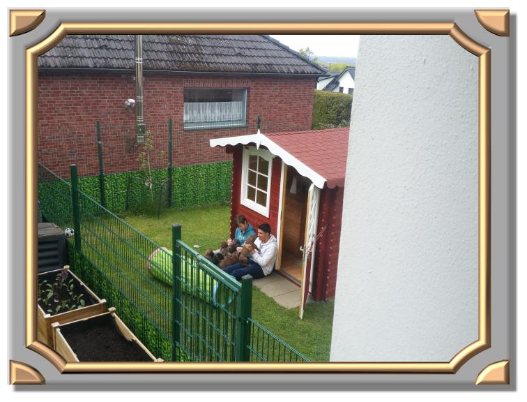 Fressen und Spielen und machen nicht mehr ins Holzhaus.