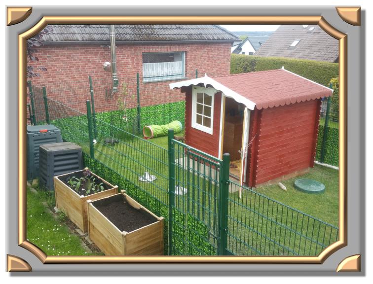 Blockhaus mit großem Auslauf und Spielgeräten umziehen, damit sie ihren Erkundungsgeist und die neue Umwelt und