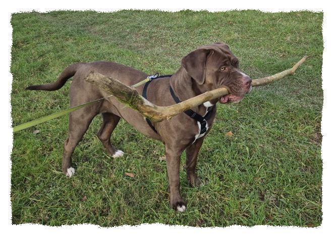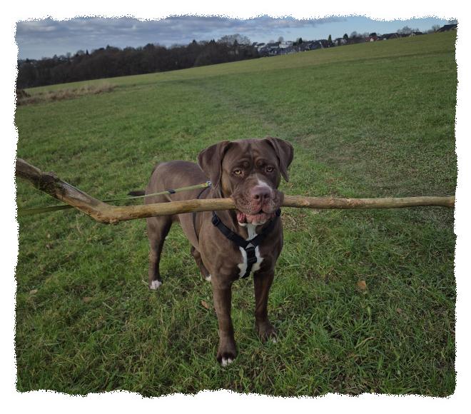 von der Statur her gesehen. Sie pöbelt an der Leine momentan noch rum,