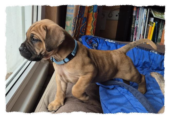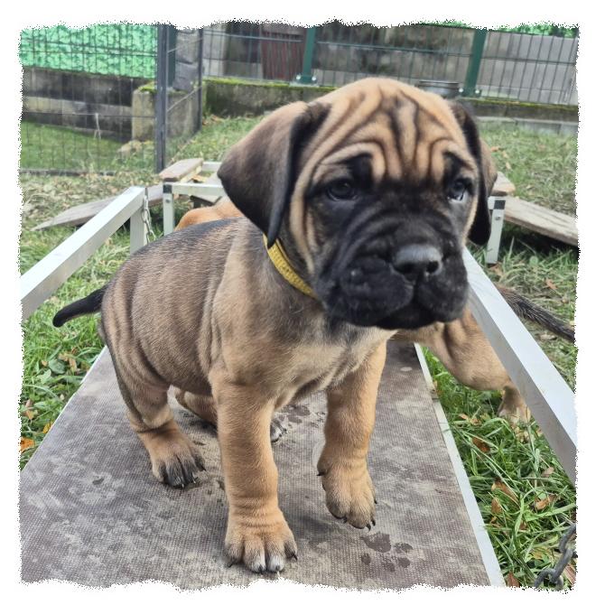 knochenstarke und sportlich/molossoide Hündin, die sehr menschenfreundlich und